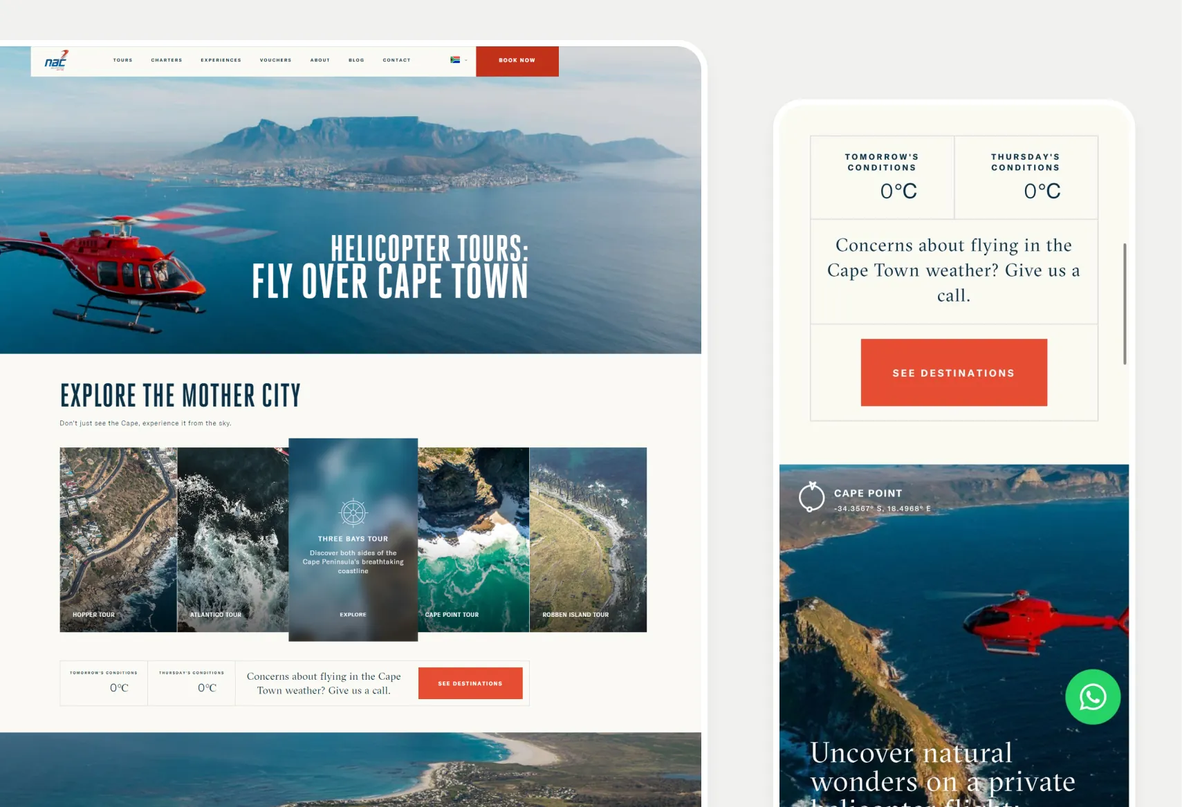 One of the foremost helicopter tour operators in the Cape needed a website and booking system that could handle their needs both from an e-commerce perspective and from an operational standpoint.
